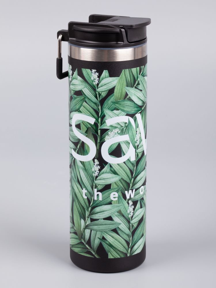 Лаконичный дизайн с ровным цилиндрическим корпусом — специально для круговой печати и гравировки, достаточный объем и привлекательная деталь в виде подвижной квадратной ручки для переноски.