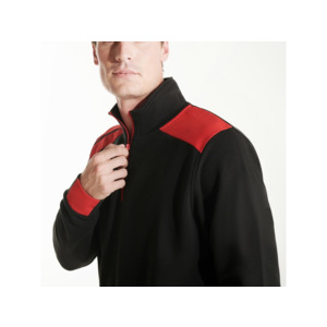 Толстовка с воротом- стойкой на молнии с сочетанием двух цветом. Половина манжет и низ изделия из рибового полотна 1х1. Укрепляющая отстрочка по внутреннему воротнику. Контрастные плечи , детали, молния и манжеты