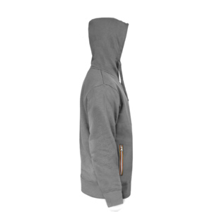 Комфортная толстовка худи на молнии LAS VEGAS MAN из футера с начёсом, плотностью 280 г м² и смесовым составом: 65% полиэстера и 35% хлопка. С таким составом изделия не деформируются и служат долго. Капюшон с подкладом и удобным высоким воротником-стойкой. Шов горловины усилен мягкой лентой Низ толстовки и рукава из эластичной рибаны. Основная молния и молнии в боковых карманах - контрастные. Материал: футер с начёсом, 65% полиэстера и 25% хлопка, 280 г м².