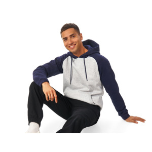 Толстовка с капюшоном (худи) из плотного футера с мягким начесом внутри. Модная и практичная модель, подходит для прогулок по городу, активного отдыха, путешествий и, конечно, промо мероприятий. - Прямой силуэт. - Контрастный рукав реглан и капюшон. - Капюшон с подкладкой из основного материала с металлическими люверсами, круглым шнуром с металлическими наконечниками. - Удобный карман-кенгуру, край отделан рибом 1х1. - Низ толстовки и манжеты рукавов обработаны рибом 1x1. - Полотно с небольшим содержанием полиэстера долго сохраняет форму и не мнется.