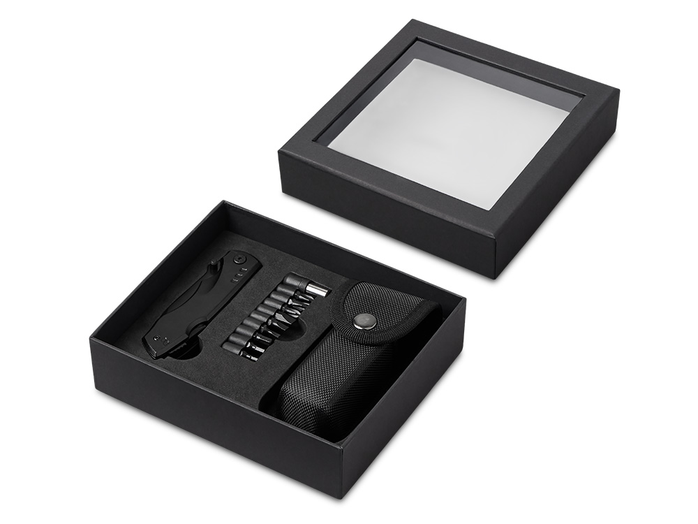 Универсальный мультитул с битами в подарочной упаковке с окном «Шэйп» , черный