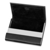 Визитница на магните выполнена из металла с искусственной кожей снаружи и черном бархатом внутри.