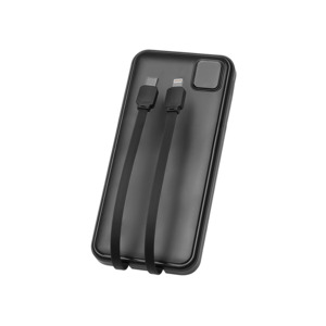 Удобный внешний аккумулятор с встроенными кабелями USB-C и Lightning — ваш надежный партнер в путешествиях, на встречах и в повседневных задачах. Цифровой дисплей в реальном времени показывает точный остаток заряда, а компактные габариты делают его таким же удобным, как смартфон. Прочный корпус из переработанного АБС-пластика и емкость 10000 мАч обеспечивают долгую работу даже при интенсивном использовании. Идеальный выбор для тех, кто ценит комфорт и функциональность в одном устройстве. Продуманная упаковка: для открытия просто потяните за язычок, и появится гаджет с нанесением. - Встроенные кабели USB-C и Lightning — больше не нужно искать провода - Цифровой дисплей с точным отображением заряда - Удобная зона под нанесение логотипа - Компактный размер, сопоставимый с телефоном — легко помещается в карман, сумку или портфель. - Упаковка с удобным и быстрым открытием