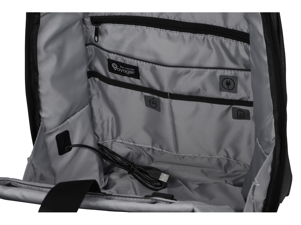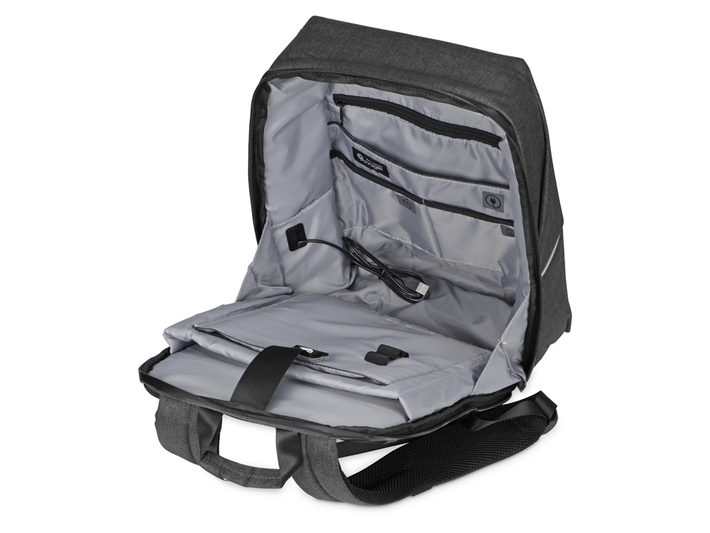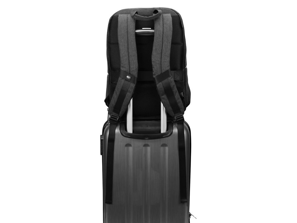 Благодаря непромокаемому материалу и непромокаемой молнии ваши вещи прекрасно сохранятся во время деловых поездок и путешествий в любую погоду. В рюкзаке все предусмотрено для удобства и комфорта. - повышенная безопасность: молния основного отделения смещена вплотную к спине, что осложняет несанкционированный доступ к содержимому потайной карман на спине светоотражающие вставки по бокам - водостойкость: водостойкий материал водонепроницаемая молния - органайзер с 4мя отделениями, одно из которых на молнии - отделения для планшета и ноутбука 15.6’’ фиксируются липучкой - вместительный внешний карман на скрытой молнии - внешний USB порт для зарядки устройств - ремень на спинке для надежного крепления на ручку чемодана - эргономичные лямки с регулировкой длины, кармашками и ремнями для крепления очков и других мелочей - дышащая сетка на спинке - вместимость 17 л - максимальная нагрузка до 8 кг - нетканый мешок для хранения в комплекте.