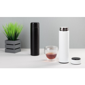 Финикс - новый эталон практичности. Новинка получила керамическое покрытие колбы. Белая керамика защищает напиток от контакта с металлом, благодаря этому он дольше сохраняет свежесть и полезные свойства. В комплекте инфузер для заваривания чая или кофе. Крышка с индикацией разборная, батарейку (тип CR2032) можно легко заменить.