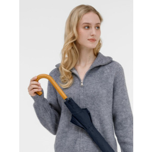Элегантный зонт с большим куполом и деревянной J-образной ручкой.