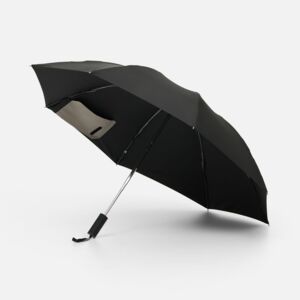 Складываясь после дождя, он прячет мокрую поверхность внутри, а сухая остается снаружи: в закрытом положении зонт не побеспокоит окружающих и не намочит одежду. Благодаря застежке на ремешке зонт удобно подвесить, например, на рюкзак.
