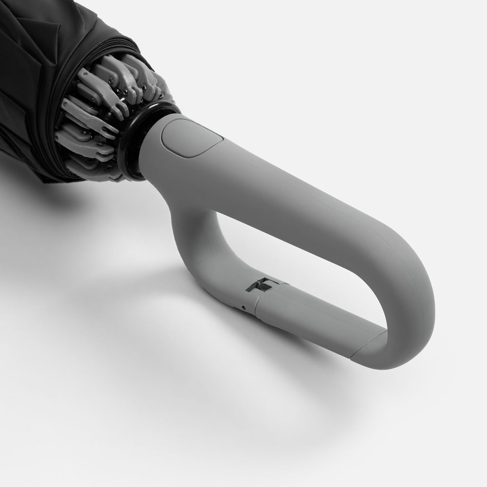 Складываясь после дождя, зонт прячет мокрую поверхность внутри, а сухая остается снаружи: так в закрытом положении он не побеспокоит окружающих и не намочит одежду. За ручку-карабин зонт удобно подвесить, например, на рюкзак.