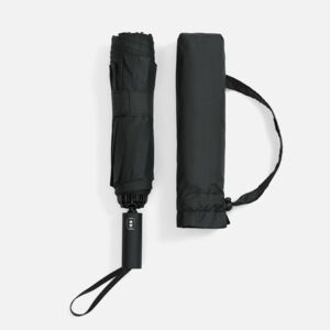 Складываясь после дождя, зонт прячет мокрую поверхность внутри, а сухая остается снаружи: так в закрытом положении он не побеспокоит окружающих и не намочит одежду. В сложенном виде зонт компактен, а благодаря чехлу-сумке на кулиске его удобно носить с собой.